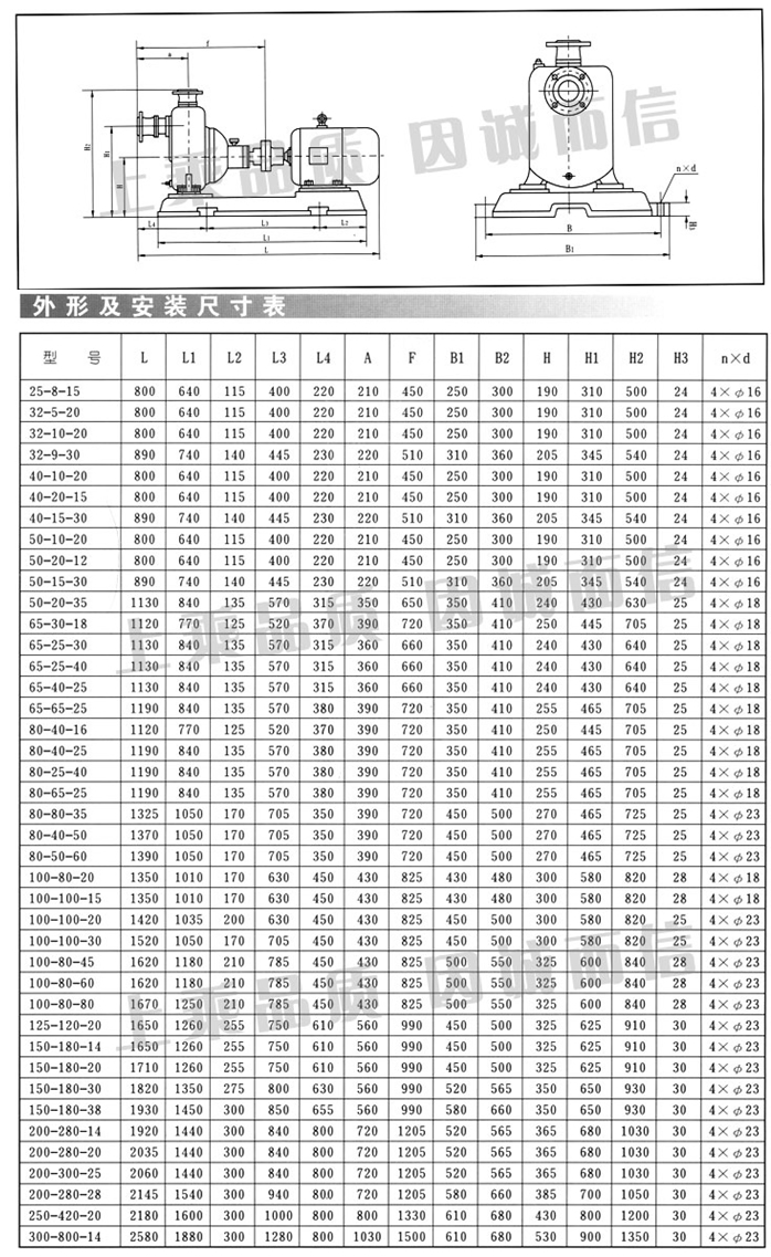 三、ZW型自吸式無堵塞自吸泵技術(shù)參數(shù):
