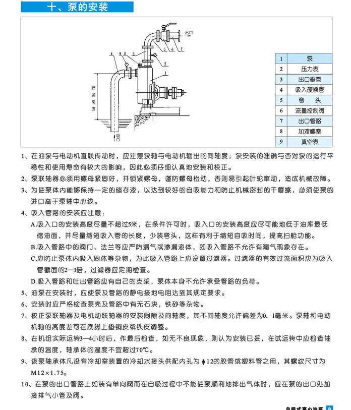 1 0、在泵的出口管路上如裝有單向閥而在自吸過(guò)程中不能使泵順利地排出氣體時(shí),應(yīng)在泵的出口處加接排氣小管及閥。