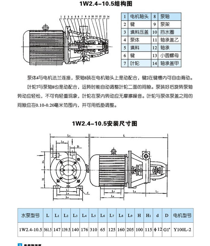 主要零件(見結構圖)有(1)泵(2)泵蓋(3)葉輪(4)托架結合體(5)泵軸(6)爪型彈性聯(lián)軸器(7)特別組合體機械密封。該型泵與電機合裝在同一底座上.進、出口方向為斜鑰上.經(jīng)接彎管可変為垂直向上。葉輪在軸上能夠自由地作軸向移動,泵在工作中葉輪能自行調(diào)節(jié)好與泵體和泵蓋之間的間隙。