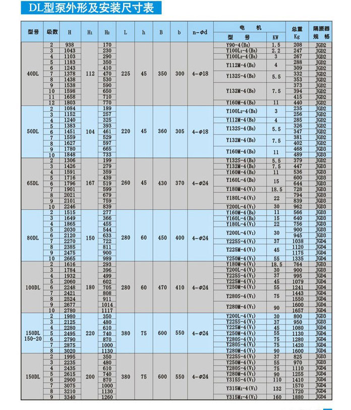 四、DL系列立式多級(jí)離心泵技術(shù)參數(shù):