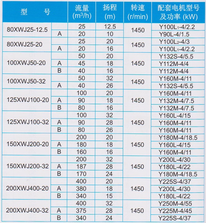 四、XWJ新型無(wú)堵塞紙漿泵型號(hào)意義:
