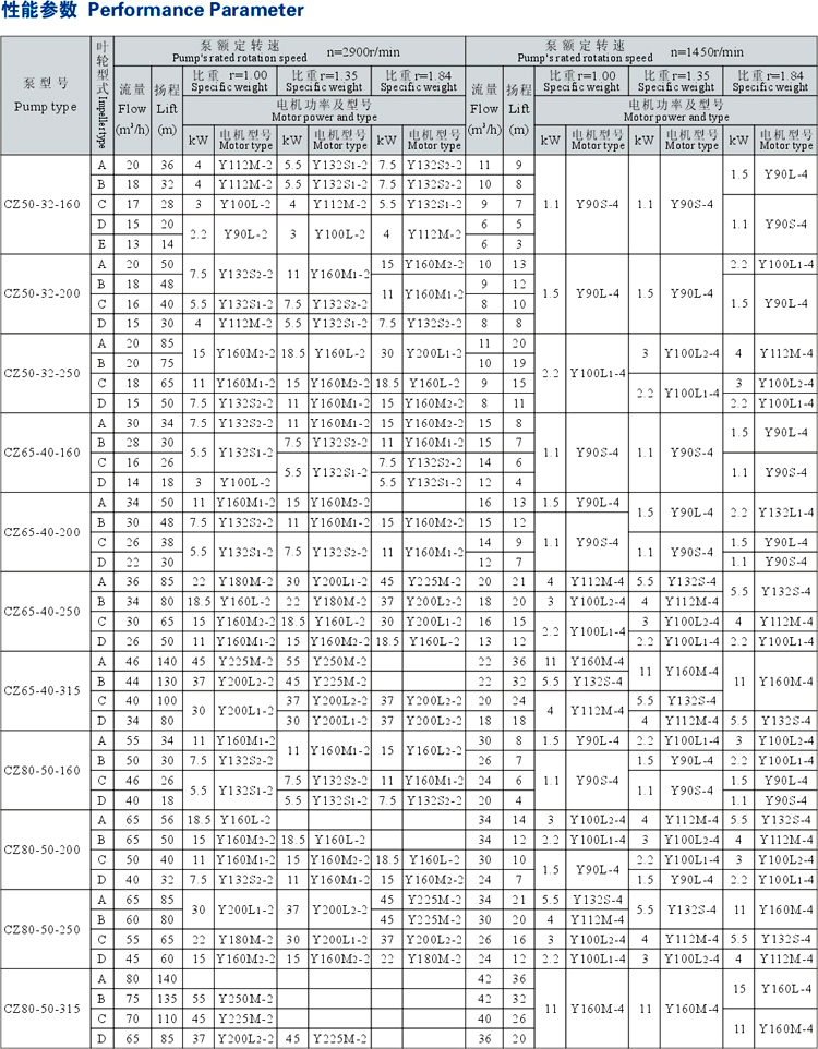 化工離心泵的性能范圍包括了IH系列化工泵所有性能,其效率、汽蝕性能等指標均超過IH泵,可與IH型泵進行單機互換。泵轉速分為2900和1450(轉/分) 兩種。