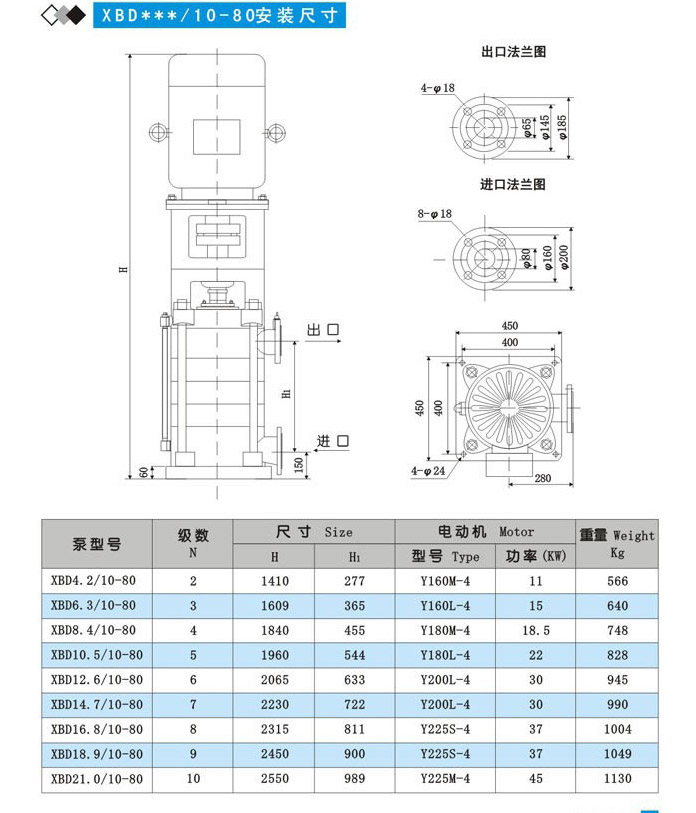 XBD8.0/10-75W 10 0.80 1450 68 15 3.0