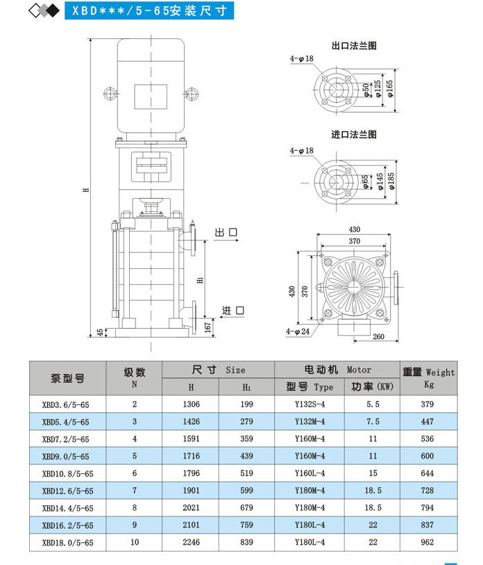 XBD1.8/5-50W 5 0.18 1450 65 2.2 3.2